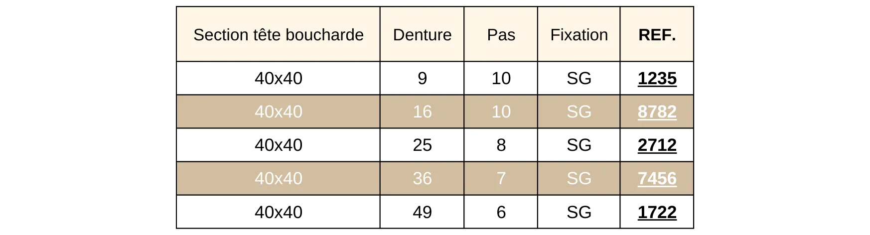 Boucharde avec dents en acier traité, liaison cône SG. Réaffûtable