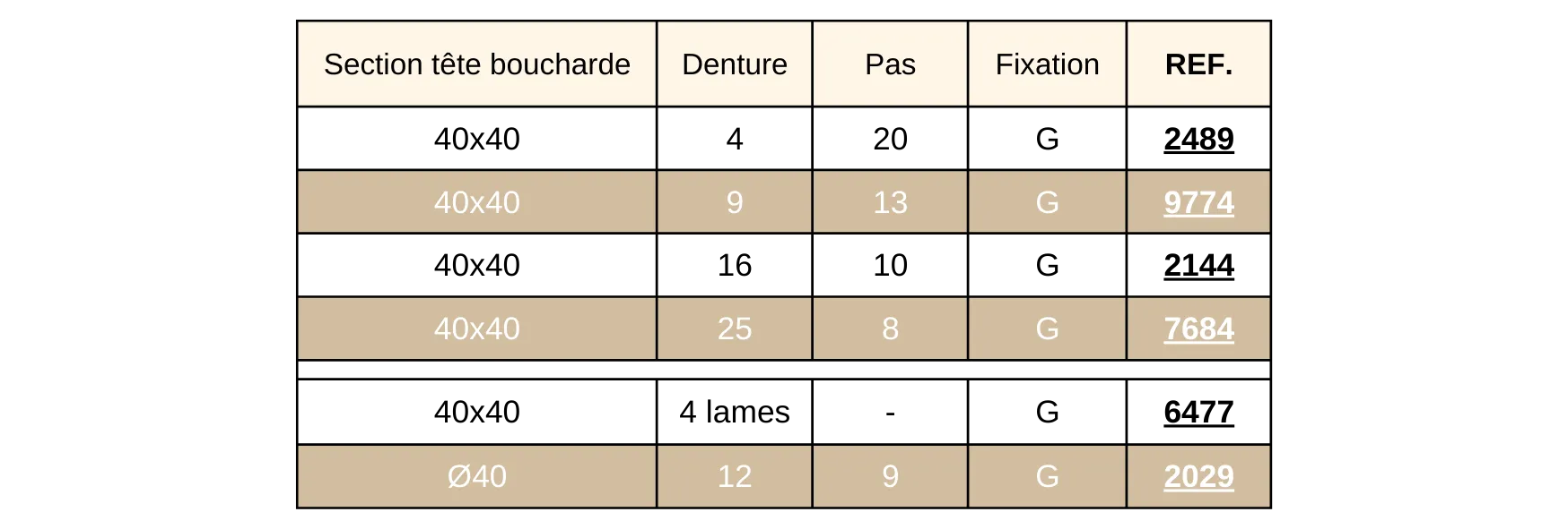 Boucharde en acier traité avec pointes en carbure en tungstène, liaison cône G. Réaffûtable.