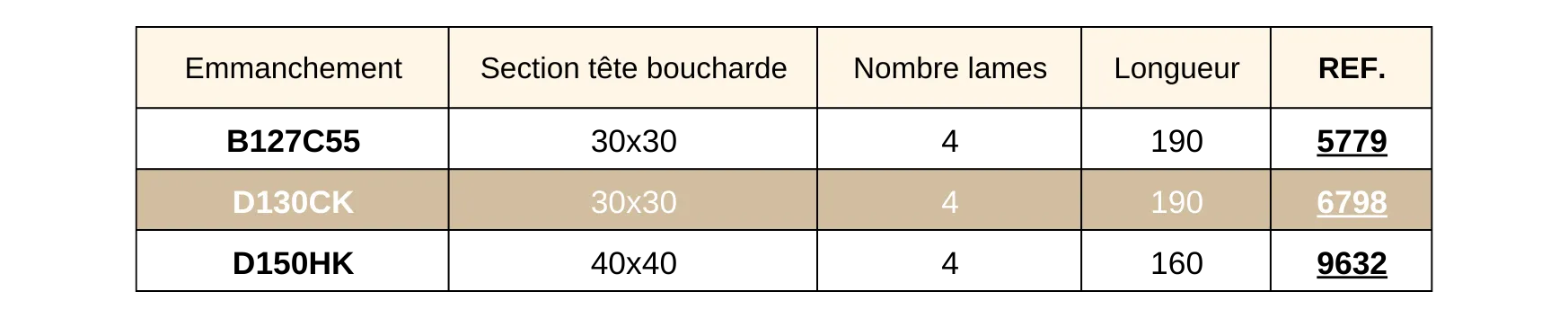 – pneumatique avec un emmanchement B127C55, D130CK ou D150HK