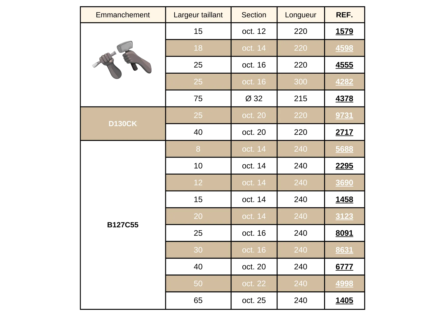 – à main, à l’aide d’un outil de martellerie de type massette de graveur ou massette ronde (dans la gamme martellerie)