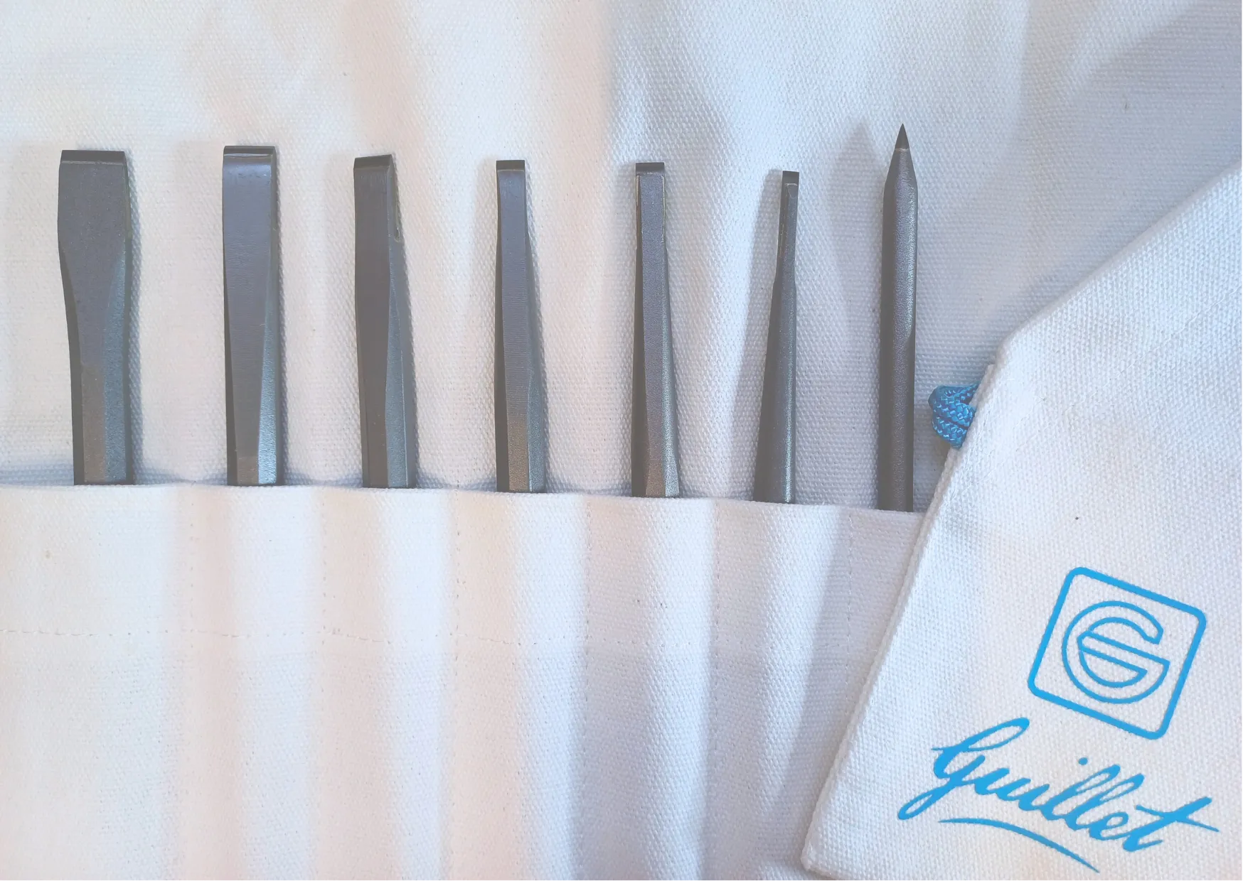 Aussi disponible en trousse tissu siglée (ref.3223), composition : 6 ciseaux de largeur 3, 5, 6, 8, 10 et 12mm avec 1 pointe à tracer carbure