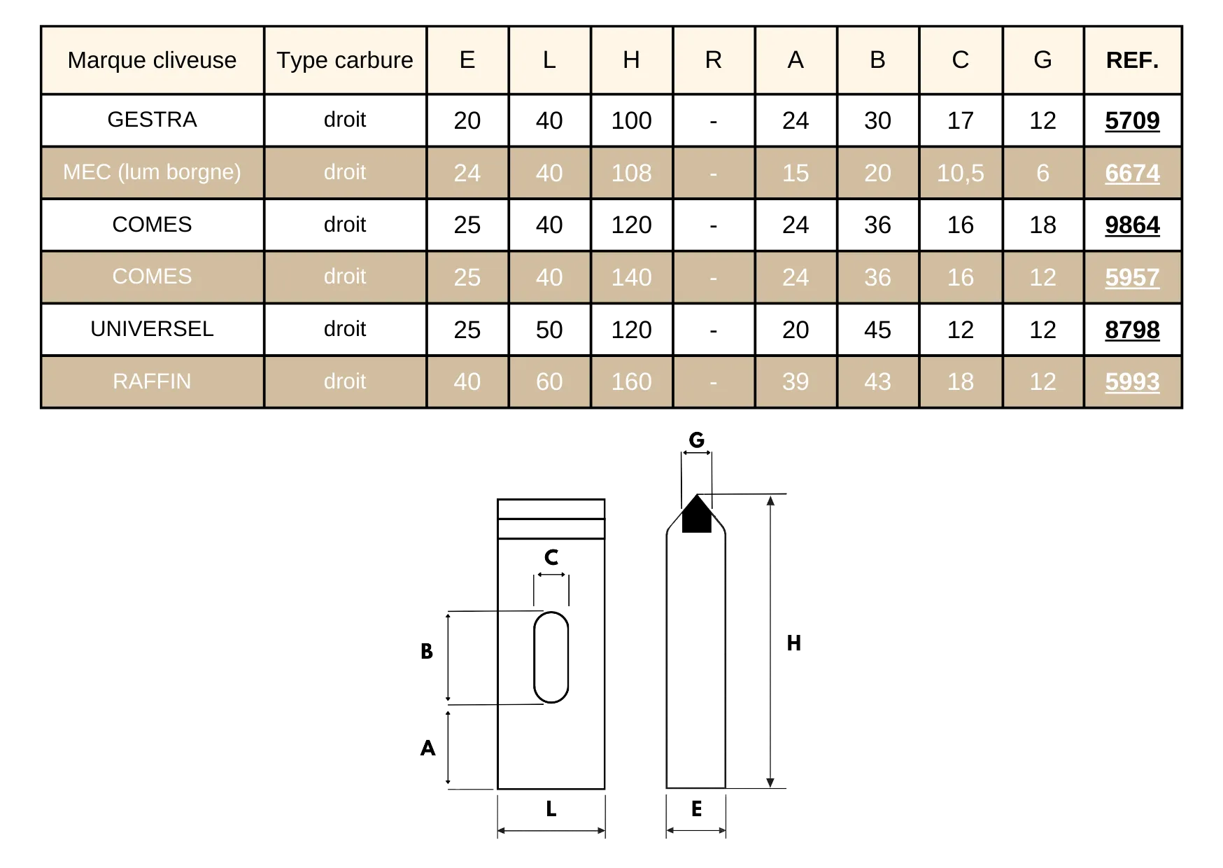 Plusieurs références existantes, possibilité de réaliser des couteaux sur-mesure en fonction de vos besoins spécifiques.