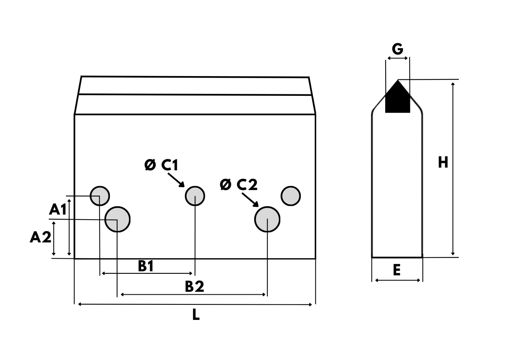 Gros couteau en acier traité, avec un carbure de tungstène de forme droite. Avec ou sans trous.