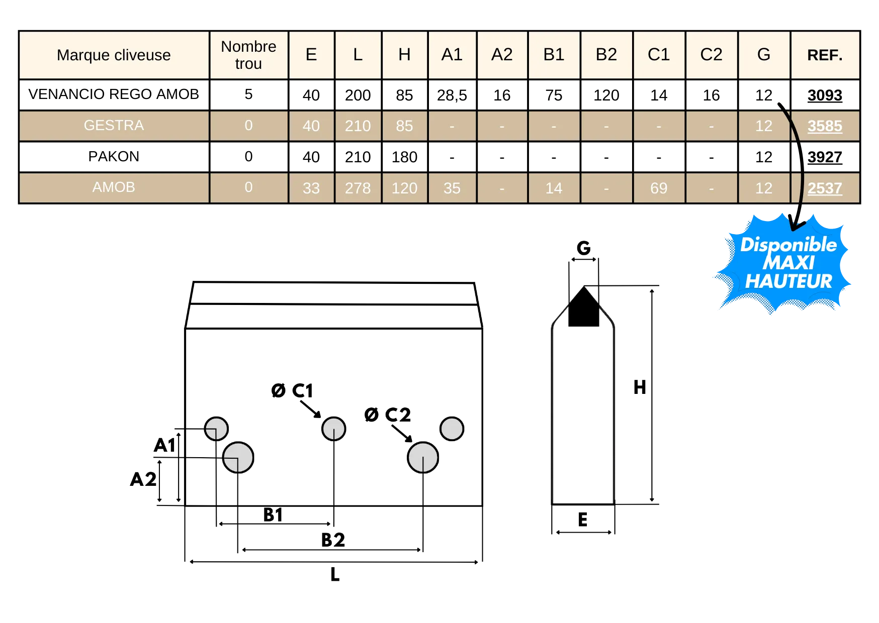 Couteau inférieur (avec ou sans trou(s))