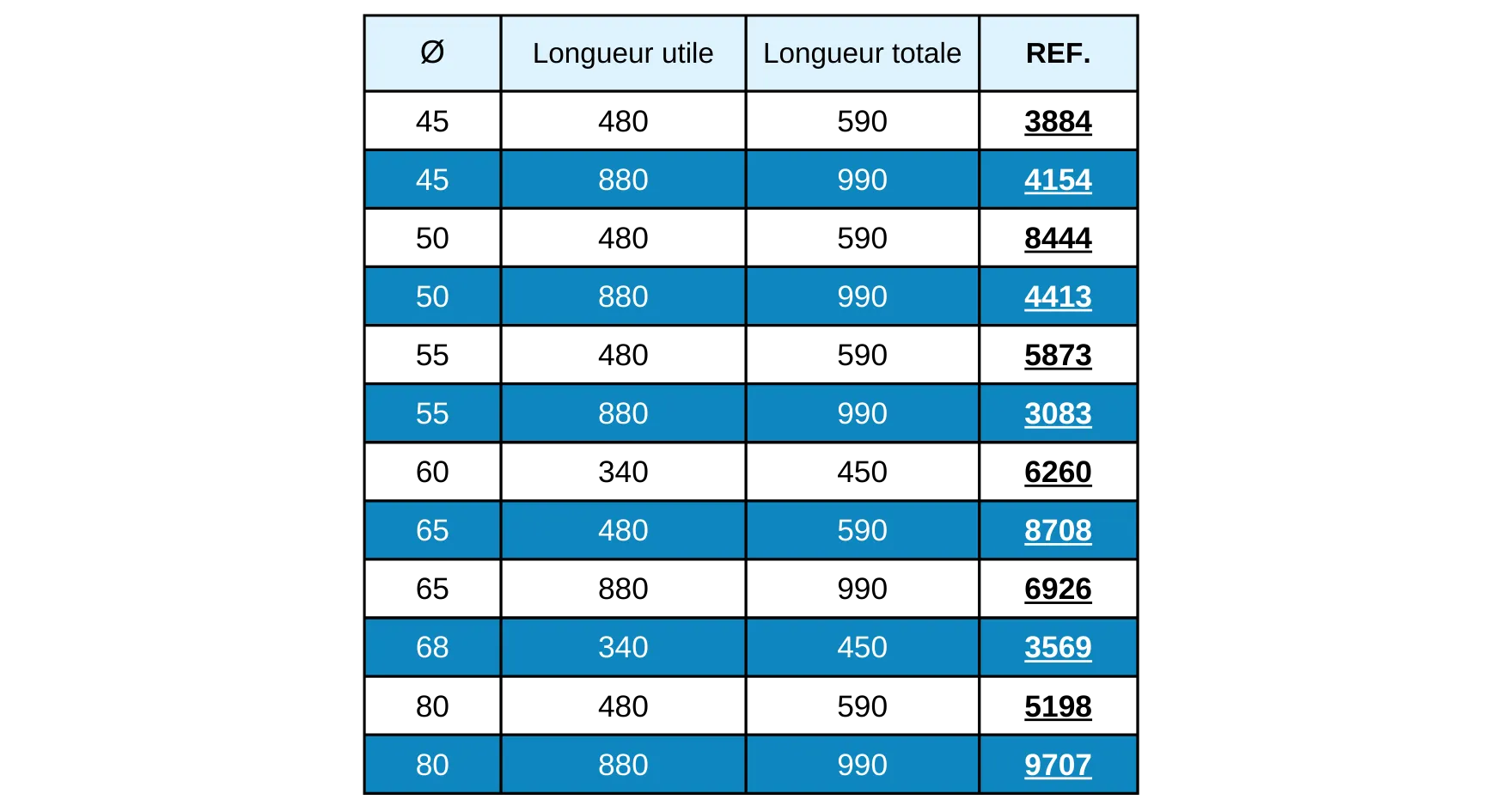 – 7 diamètres disponibles sur stock