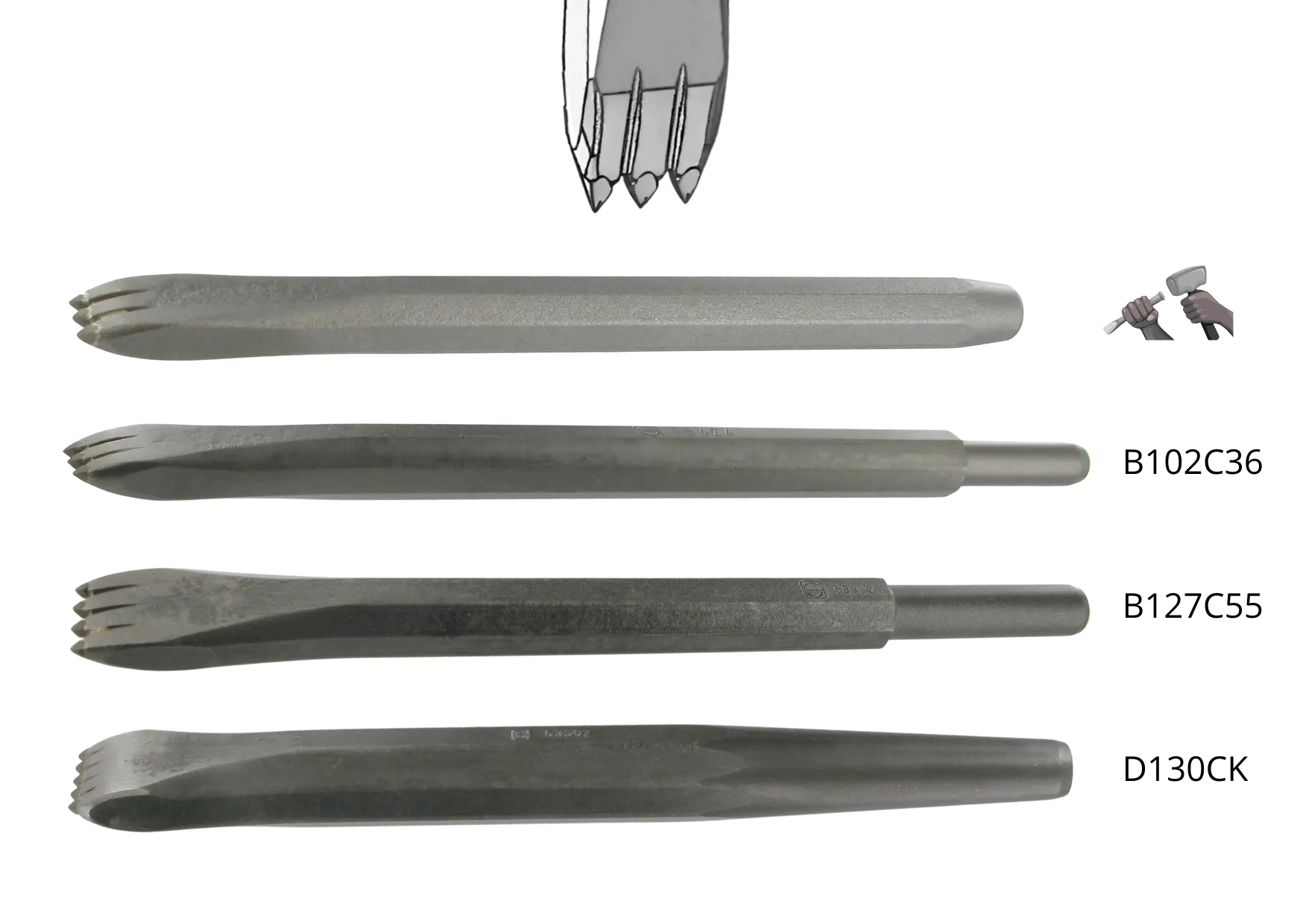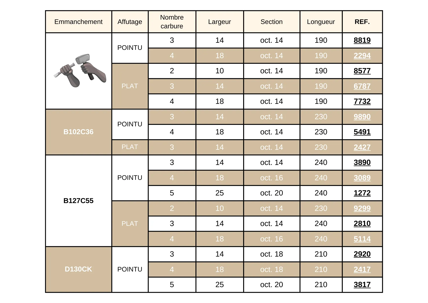 – à main, à l’aide d’un outil de martellerie de type massette de tailleur ou massette ronde (dans la gamme martellerie).
