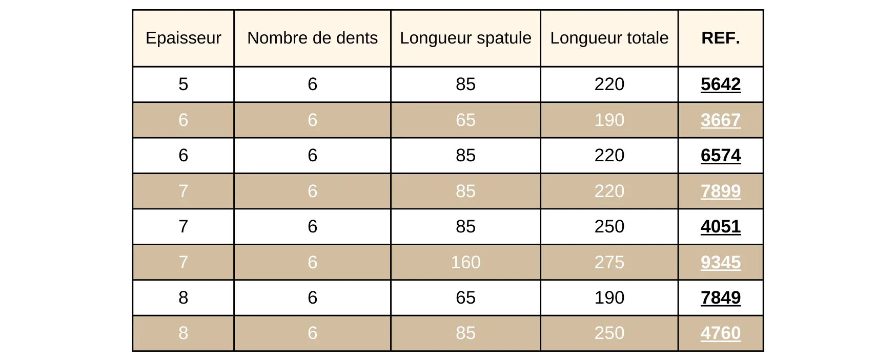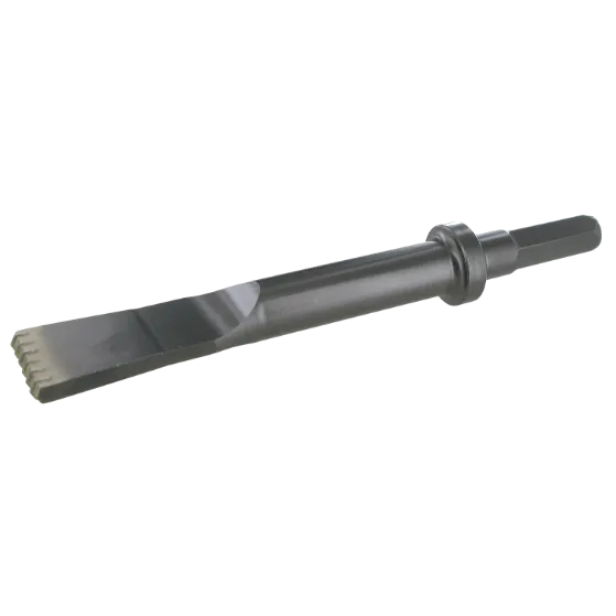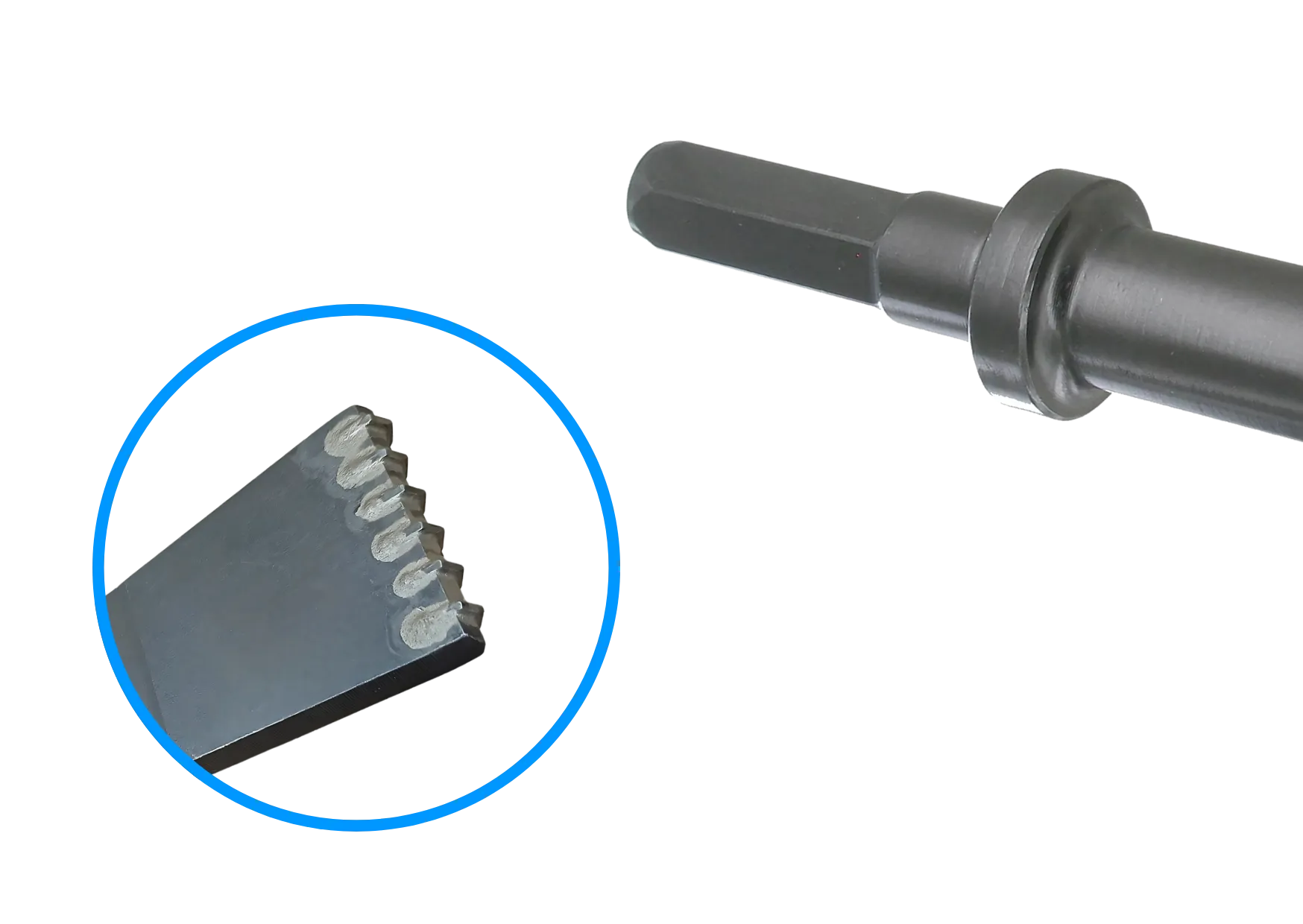 Outil à déjointoyer (ou burin denté), corps en acier traité, avec dents en carbure de tungstène.