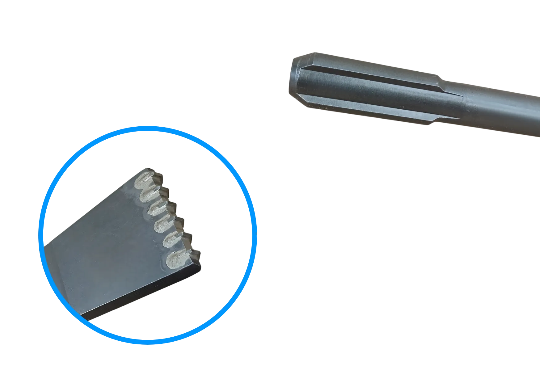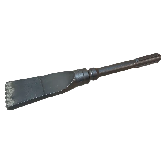 Outil à déjointoyer (ou burin denté), corps en acier traité, avec dents en carbure de tungstène.