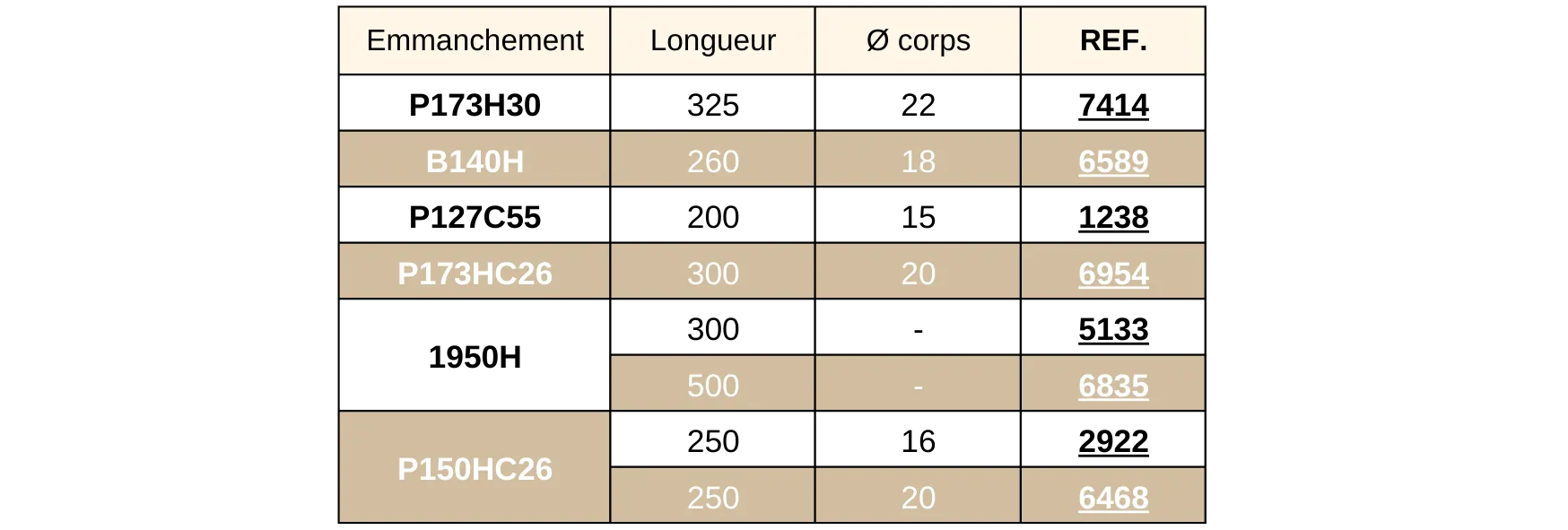 – pneumatique avec emmanchement P173HC30,1950H, B140H, P127C55, P150HC26, P173HC26