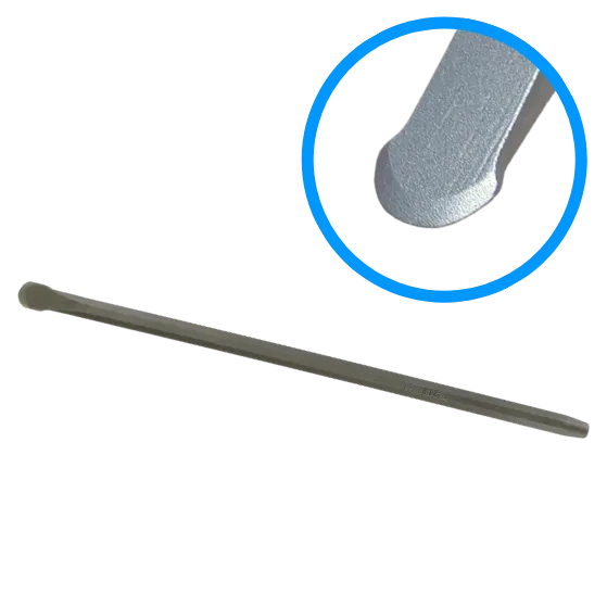 Outil avec un taillant de forme ronde en acier traité, pour réaliser des formes concaves ou accentuer les saillies dans de la pierre tendre…