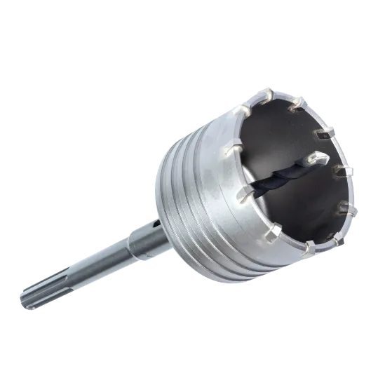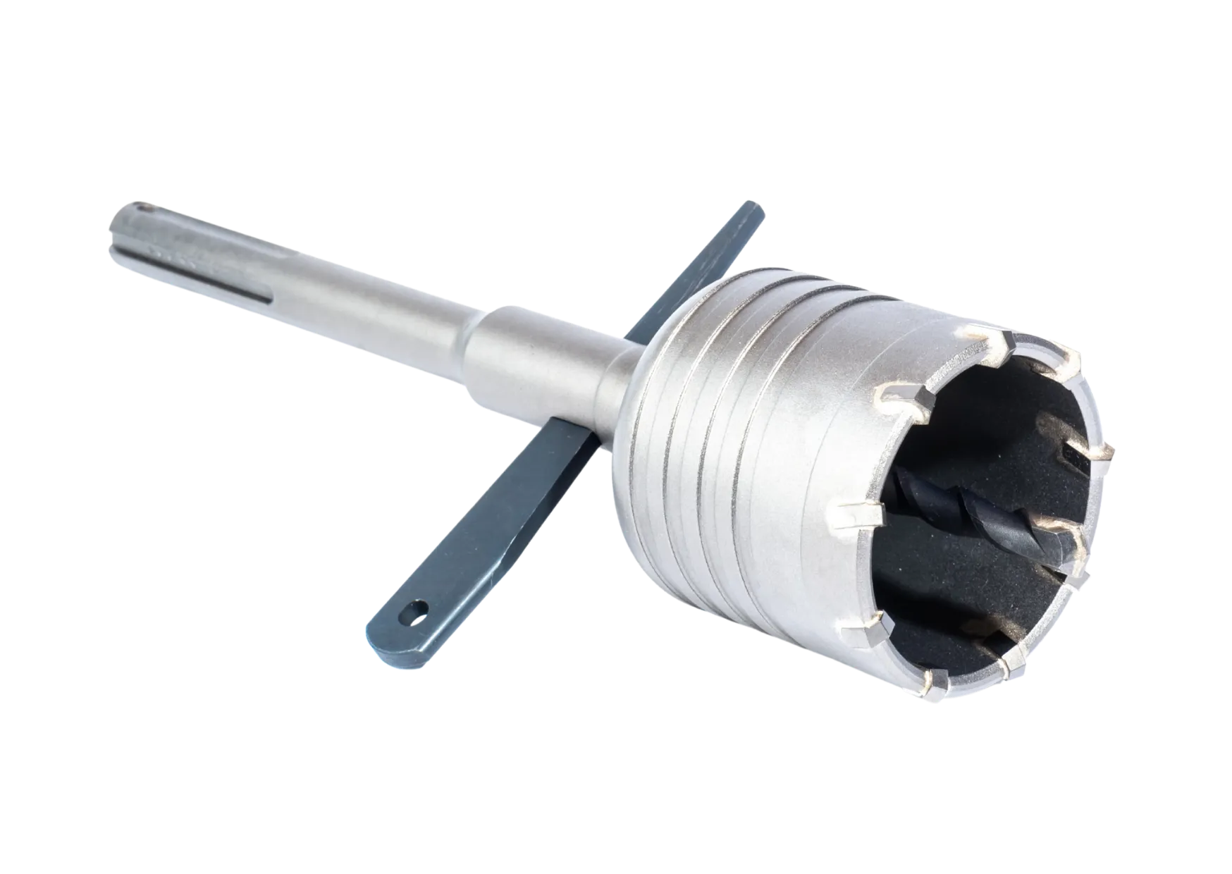 Trépan carbure monobloc, performant et robuste, en acier traité, muni de nombreuses dents largement dimensionnées en carbure de tungstène.
