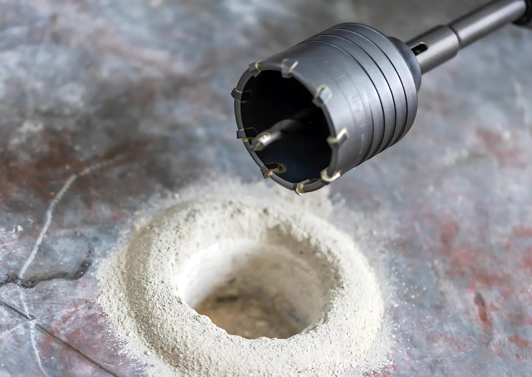 Montage : trépan + foret centreur Coromax (dans la gamme Trépan COROMAX SDS-MAX)