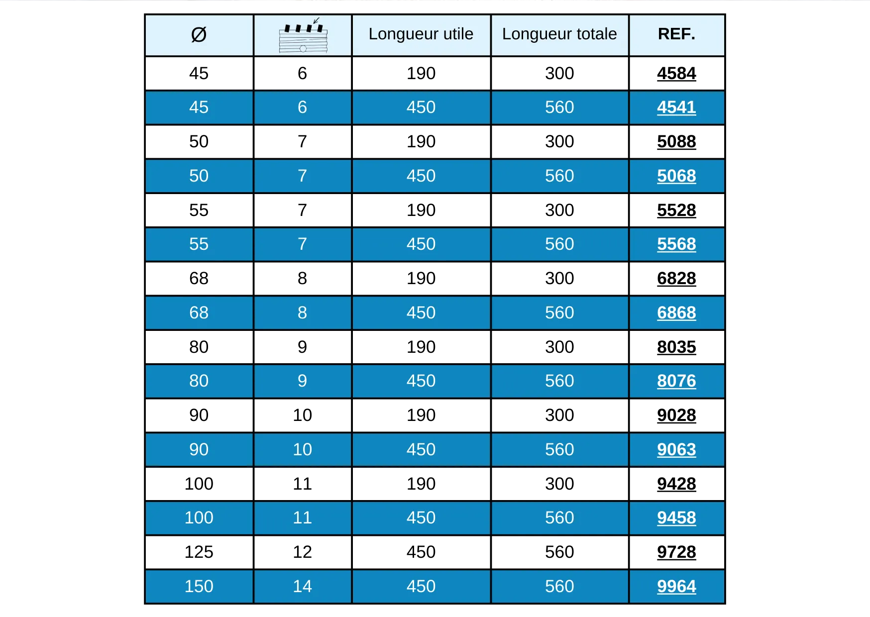 – Plusieurs diamètres disponibles jusqu’à 150mm
