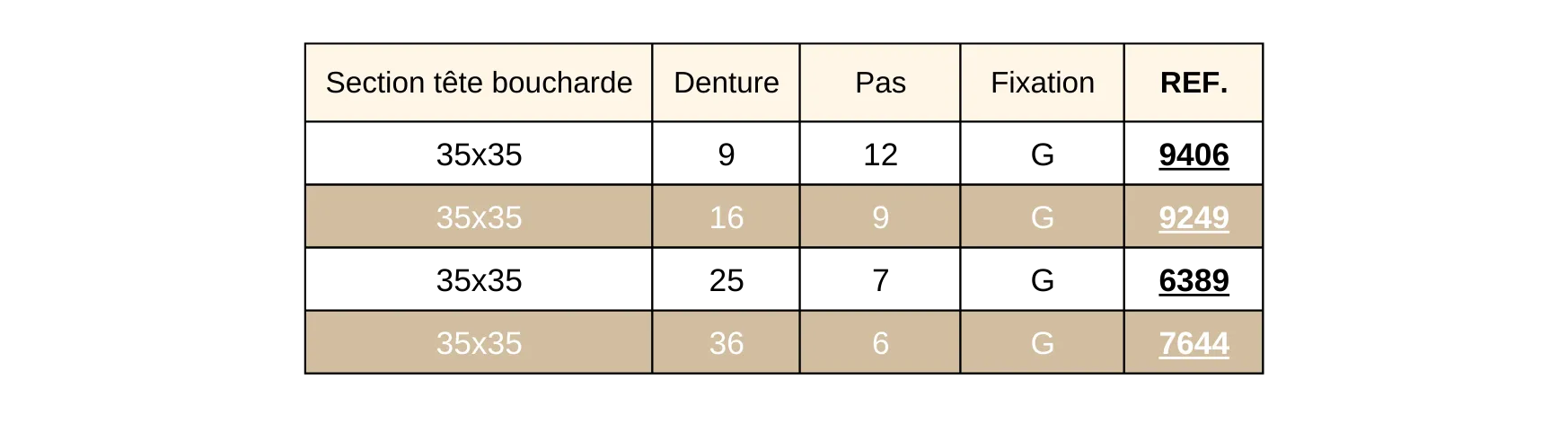 Boucharde en acier traité, liaison cône G. Réaffûtable